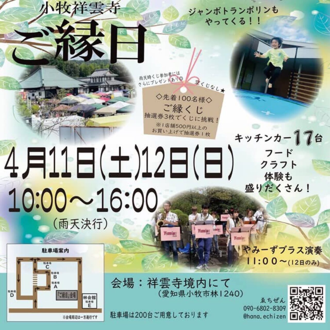 2026年4月11日(土)・12日(日)、小牧市林にある「祥雲寺」にて「ご縁日」が開催されます!