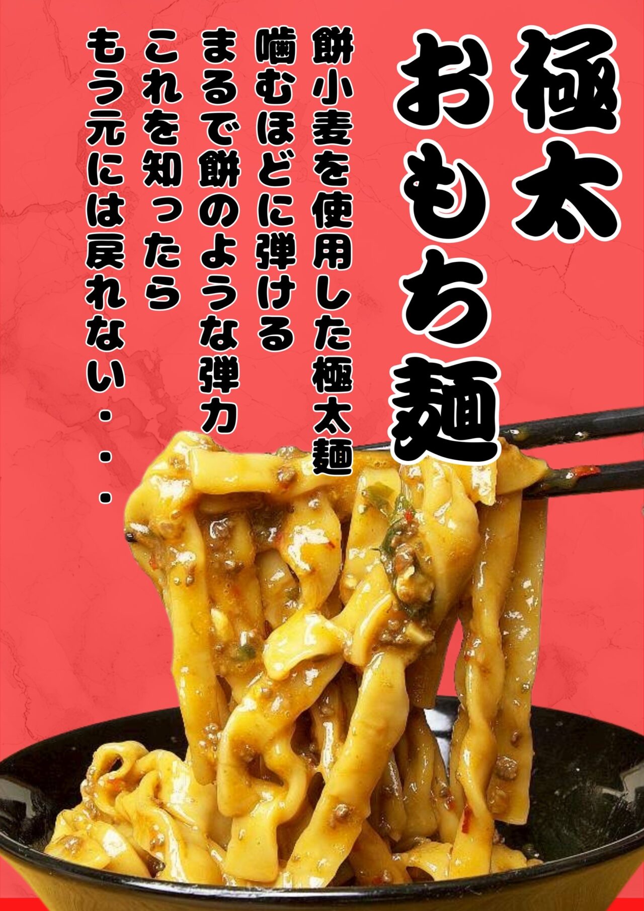 今回のリニューアルでは、新たに「極太おもち麺」が登場。